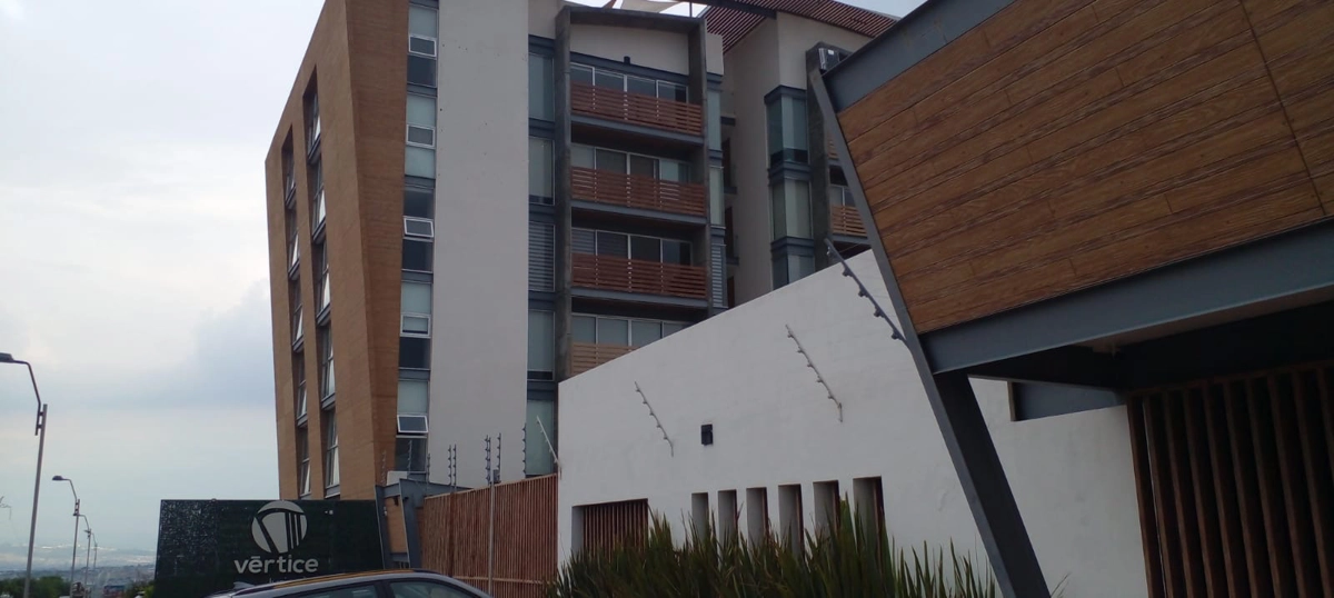 Departamento en venta en Cumbres del Lago, Querétaro, Querétaro. 2 habitaciones, 2 baños completos, 92m² de construcción. El complejo se llama Vértice Juriquilla y está totalmente vendido. Tiene áreas comunes, gimnasio, alberca es PET friendly. Seguridad 24/7